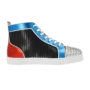 The Christian Louboutin Lou Spikes Orlato Flat “Pleated Metallic” takes the brand’s iconic high-top silhouette into statement-making territory. The upper is dressed in pleated metallic fabric panels, creating a textured, light-reflecting effect that exudes luxury. Smooth leather overlays frame the design, while the signature spiked toe cap adds Louboutin’s rebellious edge. A lace-up front, padded collar, and leather lining ensure comfort and support, while the sneaker rests on a classic white rubber sole. Finished with the iconic red outsole, this pair fuses bold glamour with streetwear-inspired elegance.