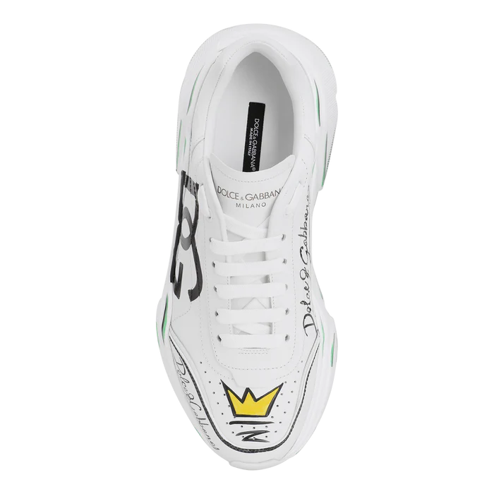 The Dolce & Gabbana Daymaster Shoes are contemporary sneakers that merge luxury design with sporty attitude. Built on a lightweight oversized rubber sole, they provide comfort, stability, and a bold silhouette. The uppers are crafted from a mix of premium leather, suede, and technical fabrics, reflecting Dolce & Gabbana’s signature attention to detail. Accented with iconic branding and statement finishes, the Daymaster is a versatile sneaker that elevates both casual and streetwear-inspired looks with a touch of refined Italian craftsmanship.