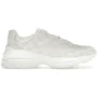 The Gucci Rhyton ‘White GG Supreme’ is a luxury sneaker that blends retro-inspired “dad shoe” aesthetics with the brand’s signature motif. The upper is crafted from white leather and GG Supreme coated canvas panels, showcasing the iconic beige-and-ebony GG pattern for a classic Gucci touch. The chunky rubber sole provides height, cushioning, and the oversized silhouette that defines the Rhyton line. Additional features include padded collars, tonal stitching, and Gucci branding on the tongue and heel, delivering a bold, streetwear-inspired sneaker with high-fashion craftsmanship.