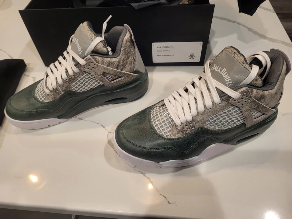 The Jack Daniel’s x The Shoe Surgeon x Air Jordan 4 ‘Cave Spring’ is a rare and artful fusion of heritage, craftsmanship, and sneaker culture. Designed by renowned customizer The Shoe Surgeon (Dominic Ciambrone), this exclusive sneaker pays tribute to the legendary limestone cave spring in Lynchburg, Tennessee—the vital source of Jack Daniel’s iconic whiskey.