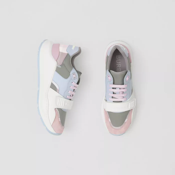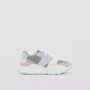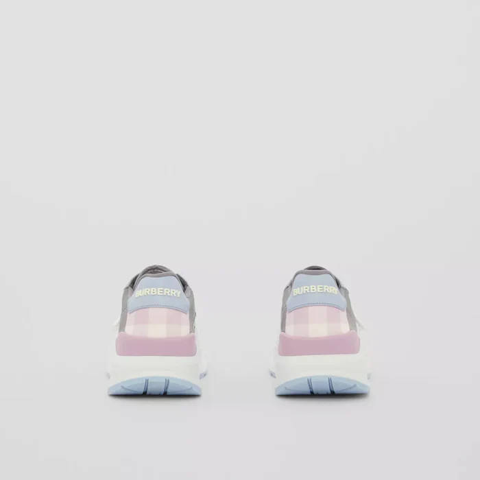 Leather, Suede and Check Nylon Sneakers Pale Grey