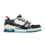 The Louis Vuitton Trainer Sneaker ‘White’ (SS21) presents a clean and versatile take on Virgil Abloh’s iconic design. Crafted from smooth white calf leather, the sneaker showcases tonal layering that highlights its premium construction. Subtle details include Monogram-embossed flowers on the rubber outsole, Louis Vuitton signature branding on the tongue and side, and a padded ankle collar for comfort. The technical rubber sole, assembled with meticulous craftsmanship, provides both support and durability. Released as part of the Spring/Summer 2021 collection, this all-white iteration embodies timeless luxury with a modern streetwear edge.