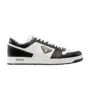 The Prada Downtown Leather ‘White Black’ presents a timeless low-top design elevated with luxury detailing. The sneaker is crafted from smooth white calfskin leather, contrasted by a black heel tab and Prada logo on the tongue for a sleek two-tone look. Clean paneling, tonal laces, and a padded collar ensure comfort while maintaining a minimalist aesthetic. Underfoot, a sculpted rubber sole embossed with Prada branding provides durability and a refined finish. Versatile and modern, the ‘White Black’ seamlessly combines streetwear appeal with Prada’s signature sophistication.